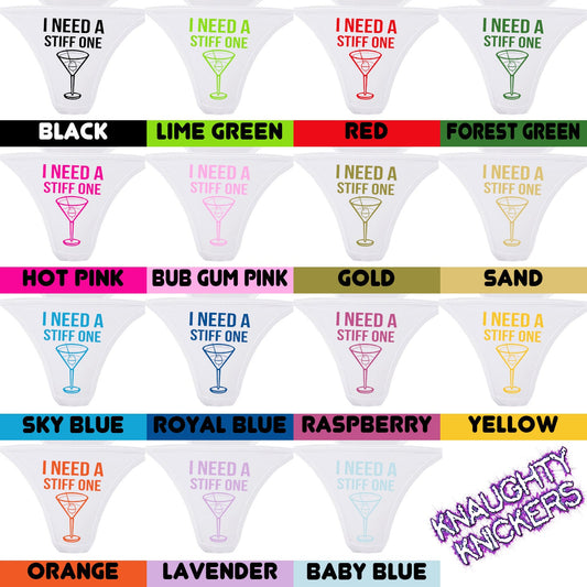 I Need a STIFF ONE funny martini cocktail white thong show your slutty side choice of colors