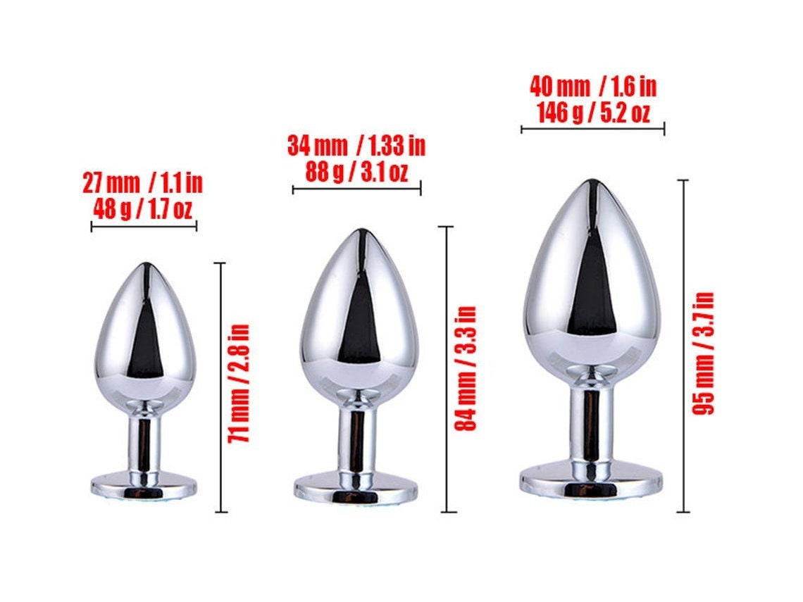This metal butt plug is made from easily-cleaned nickel-free plated aluminum alloy. The design is sublimated and sealed into a glass dome.